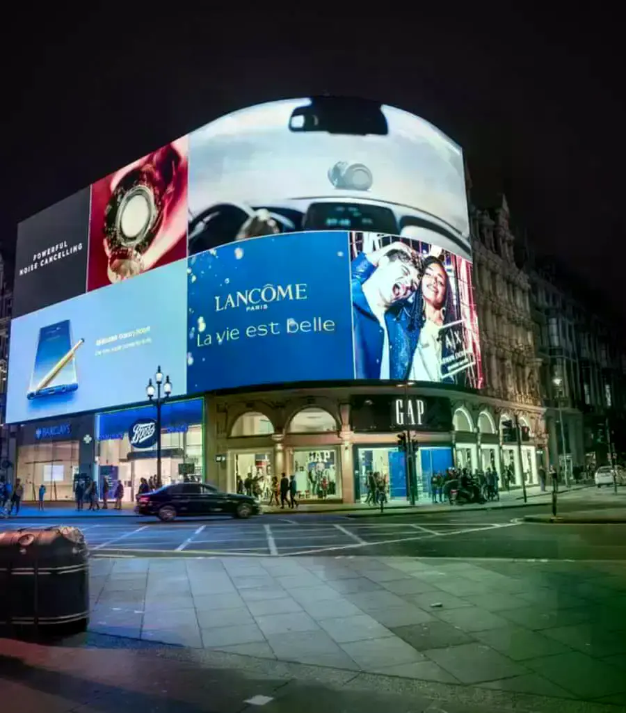 form one large screen. Typical display technologies include LCD panels, Direct View